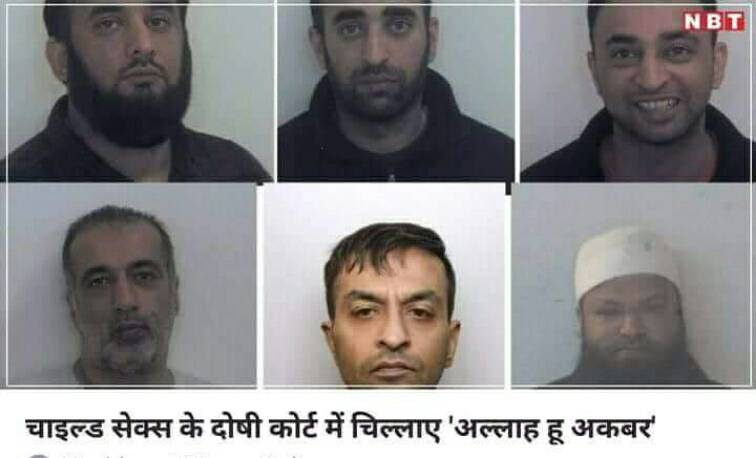 ब्रिटेन में सजा पाने के बाद एक कुख्यात चाइल्ड सेक्स गिरोह के सदस्यों ने कोर्ट में ही “अल्लाह-हू-अकबर” के नारे लगाए। दुष्कर्म के बाद एक 12 वर्षीय बच्ची के गर्भवती हो जाने को मामले में कोर्ट ने गिरोह के सभी 6 दोषियों को 10 से 20 साल तक की सजा दी है।