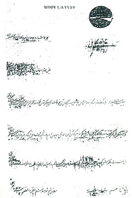 अबुल मुजफ्फर शिहाब अलदीन मुहम्मद साहब ए किरान सानी शाहजहाँ पादशाह गाजी का समानों में उत्तम और कुलीन, ध्यान देने एवं अनुग्रह के योग्य, सच्चा, राजभक्त, अनुरक्त, उच्च वंश (खाना जाद), सेवक जो इस्लाम का आज्ञाकारी है के नाम राजकीय आज्ञा पत्र (फरमान)।