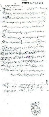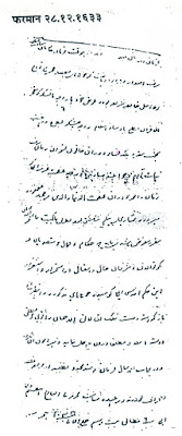 एक टिप्पणी राज्य दरबार के प्रियपात्र हकमी मुहम्मद सादिक खान (की हस्तलिपि में), 'इसको मंगलवार को पूज्यनीय की सूचना के लिये प्रस्तुत किया जाय।'